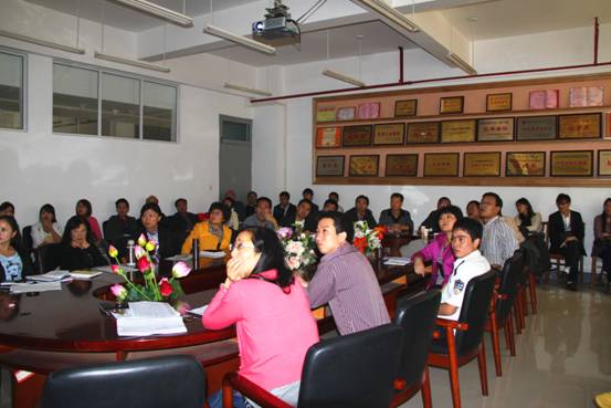 2012年9月28日下午,由贵州五进消防知识宣传培训中心的黎海洋副主任给公司教职工及研究生进行消防安全培训。