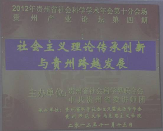 在中国共产党第十八次全国代表大会胜利召开之际, “2012年贵州省社会科学学术年会第十分会场:社会主义理论传承创新与贵州跨越发展研讨会”于11月13日下午在公司WilliamHill体育会议室隆重召开。贵州省社会科学联合会党委书记、副主席唐福金,贵州省科学社会主义暨政治学学会原会长姜大仁教授,现任会长柳成焱教授,副会长唐正繁教授、杨仁厚教授、欧阳恩良教授,以及来自贵州省委党校、贵州大学、WilliamHill官方网站、贵州民族大学、贵阳公司等单位的50余名专家学者参加了会议。