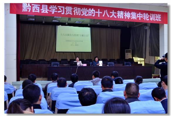 2013年3月27日下午,公司汪勇教授应黔西县委组织部、党校邀请给黔西县党政干部近100人作学习贯彻十八大精神及“十破十立”的学习报告。