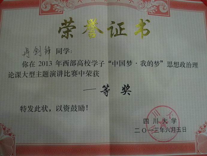 公司接到比赛邀请通知后,于4月19日由校团委、WilliamHill体育承办了比赛的初赛,最终法公司2012级法学专业的冉剑锋同学获得一等奖,并代表公司参加6月5日在四川大学举办的比赛。