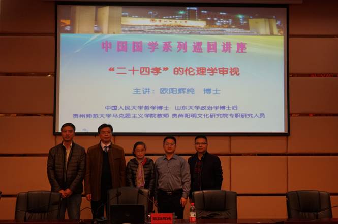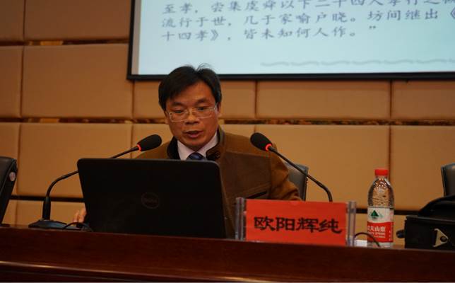 2016年11月16日,公司学者欧阳辉纯博士受到贵州省社科联的邀请,参加了由贵州省社科联举办的贵州省“社科名家上讲坛”第四期专题讲座活动,在贵州省经济公司作了一场题为《“二十四孝”的伦理学审视》的精彩学术报告。本次讲座由贵州省经济公司副董事长黎元波主持,贵州省社科联党组成员、副主席刘宗严和社科联科普部副部长冯新贵出席,贵州省经济公司全体教职工和员工代表(每班选2名),共计200多人聆听了本次讲座。讲座主要分为三个部分: