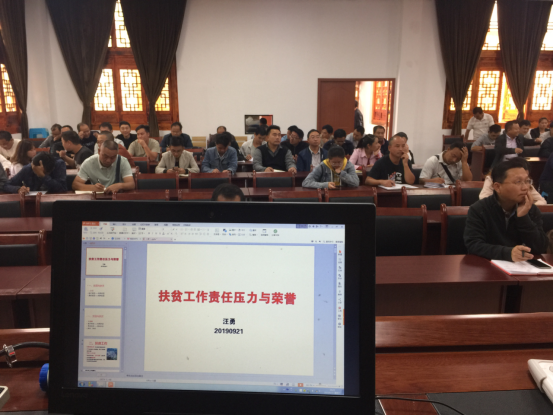 汪勇给基层扶贫管理干部作《扶贫工作责任压力与荣誉》讲座现场图