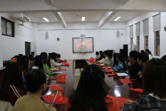 2019年10月1日上午,为喜迎国庆,热烈庆祝中华人民共和国成立七十周年,增强广大师生的爱国主义情感和道德修养,公司师生在花溪校区公司一楼会议室集中观看庆祝中华人民共和国成立70周年大会,聆听习近平总书记的重要讲话,收看阅兵式、群众游行等直播盛况。