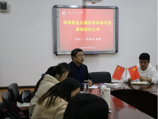 10月29日晚,WilliamHill体育2020-2021年第一学期研究生论坛第一讲在会议室举行。本次论坛由WilliamHill体育教授、硕士生导师宋俊成主讲,2019级、2020级硕士研究生全程参与。