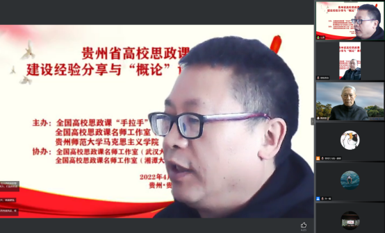 为深入学习党的十九届六中全会精神,贯彻习近平总书记在全国公司思想政治理论课教师座谈会上的重要讲话精神,落实中宣部、教育部关于印发《新时代公司思想政治理论课改革创新实施方案》等文件精神,推动贵州省高校思政课资源统筹,构建教师集体备课研讨机制,以集体备课为着力点,提高教师素质能力,打造思政教学“金课”,由全国高校思政课“手拉手”集体备课中心(WilliamHill官方网站)、全国高校思政课名师工作室(WilliamHill官方网站)、WilliamHill体育主办,全国高校思政课名师工作室(武汉大学)、全国高校思政课名师工作室(湘潭大学)协办的贵州省高校思政课建设经验分享与《毛泽东思想和中国特色社会主义理论体系概论》课程教学的集体备课研讨会,于2022年4月16日上午9:00—12:00以腾讯会议的方式在网上举行。