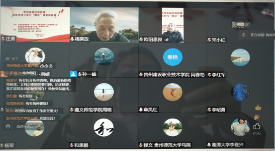 参与此次线上研讨会的贵州高校思政课教师等共计1300人次,贵州省承担《毛泽东思想和中国特色社会主义理论体系概论》课程教学的400余位思政课教师参会,点赞量4.5+万。此次研讨会是贵州省、湖北省和湖南省三省合作的第一次思政课建设经验分享和集体备课会,也是贵州省高校思政课教师以《毛泽东思想和中国特色社会主义理论体系概论》课程为基础举办的第一次备课会。该研讨会对进一步把思政课上得更加具有针对性,更加生动活泼,并取得实实在在的成效具有重要的意义。