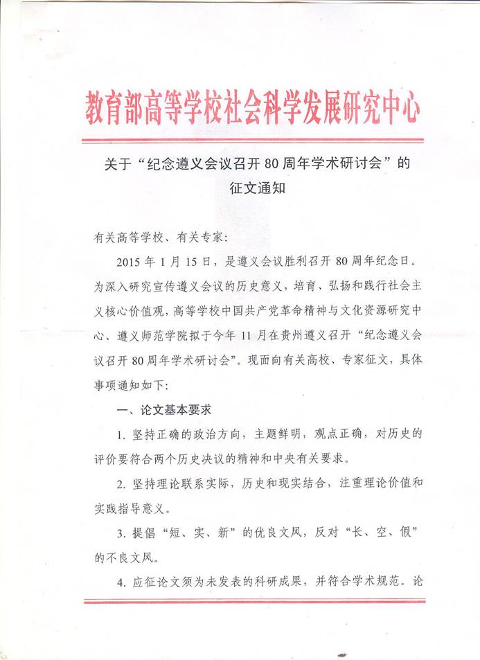 学术会议信息:纪念遵义会议召开80周年学术研讨会征文