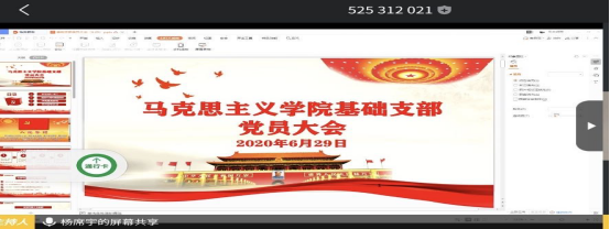 2020年6月29日下午,“思想道德修养与法律基础”教研室党支部以腾讯会议的形式召开支部党员大会。会议由基础党支部书记章凤红教授主持。