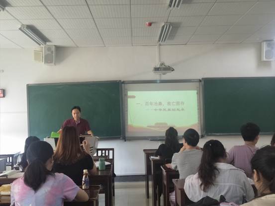第一,百年沧桑、救亡图存——中华民族站起来。宋老师把这一部分分为:中国共产党成立前的中国、中国共产党成立至新中国成立、新中国成立到改革开放前三个阶段讲解。1840年到1949年,旧中国经历了百年沧桑,鸦片战争、第二次鸦片战争、甲午中日战争、八国联军侵华战争导致中国积贫积弱、山河破碎、民不聊生。无数仁人志士走上了救国救民的道路,太平天国运动、洋务运动、义和团运动、辛亥革命等都以失败告终。1921年,中国共产党宣告成立,坚持以马克思主义为指导,带领中国人民探寻社会主义的道路,1949年成立新中国,实现了民族独立和人民的解放,中国人民从此站起来了。