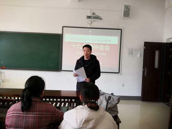 通过此次党课的学习,进一步提高了大家对十九届四中全会精神的认识,同时也给同学们在今后的学习、生活指明了方向。同学们纷纷表示,彭法老师的党课深入浅出,内容丰富,生动有趣,能把理论于实际相结合,既有理论分析,又有鲜活的例子,给同学们留了深刻的印象。