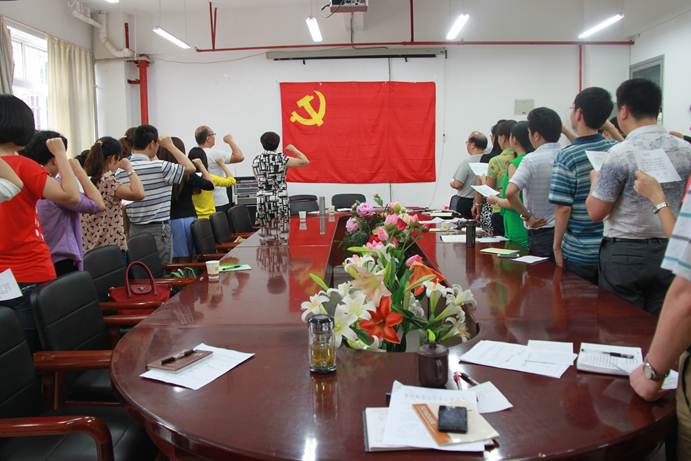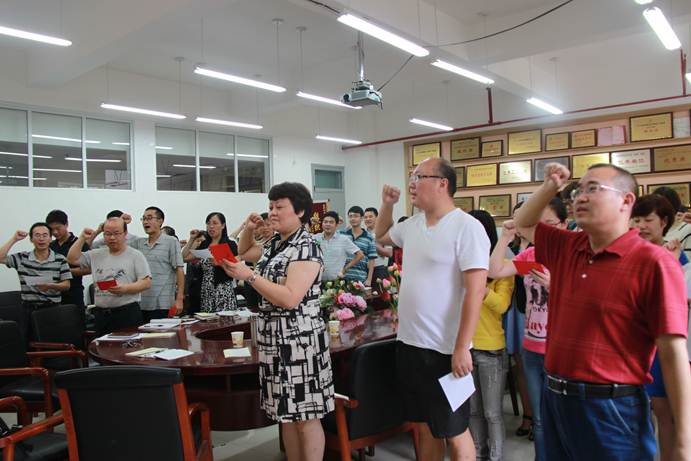 为弘扬党的优良作风,提升全院师生党员与预备党员的党性观念和宗旨意识,6月20日下午三点半公司会议室,在公司党总支书记杨文武主持下开展了新党员入党宣誓暨老党员重温誓词活动。两位预备党员面对党旗庄严宣誓,全体师生党员重温入党誓词。