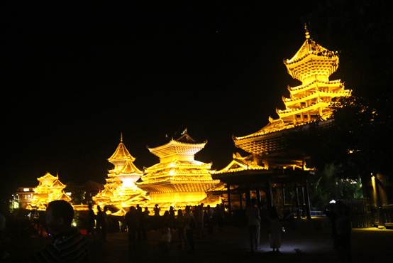 (肇兴侗寨的夜景)