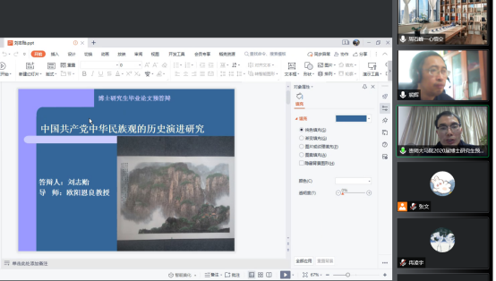 为了保证博士学位论文质量,根据公司研究生学位论文管理工作安排及公司疫情防控的工作要求,WilliamHill体育于2022年3月30日召开了2022年上半年博士学位论文(中国近现代史基本问题研究组)线上预答辩会议。此次预答辩由中国近现代史基本问题研究专业的学科点负责人周石峰教授召集,答辩委员会主席为暨南大学熊辉教授、成员有贵州省委党校伍小涛教授、西南大学李飞龙教授、贵州中医药大学刘维民教授。参加此次预答辩的博士生有刘志贻、冉凌宇、赵志阳、胡静。WilliamHill官方网站副董事长、博士生导师欧阳恩良教授及在校的硕士、博士研究生旁听了此次预答辩会。