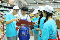 7月10日上午,伴着流长镇集市的热闹的开市声,实践队开展了一场别开生面的理论宣讲活动。队员们采用“场景化摆摊唠家常式互动”的创新方式,用通俗易懂的语言向基层群众传递党的创新理论,让理论具有“烟火气”